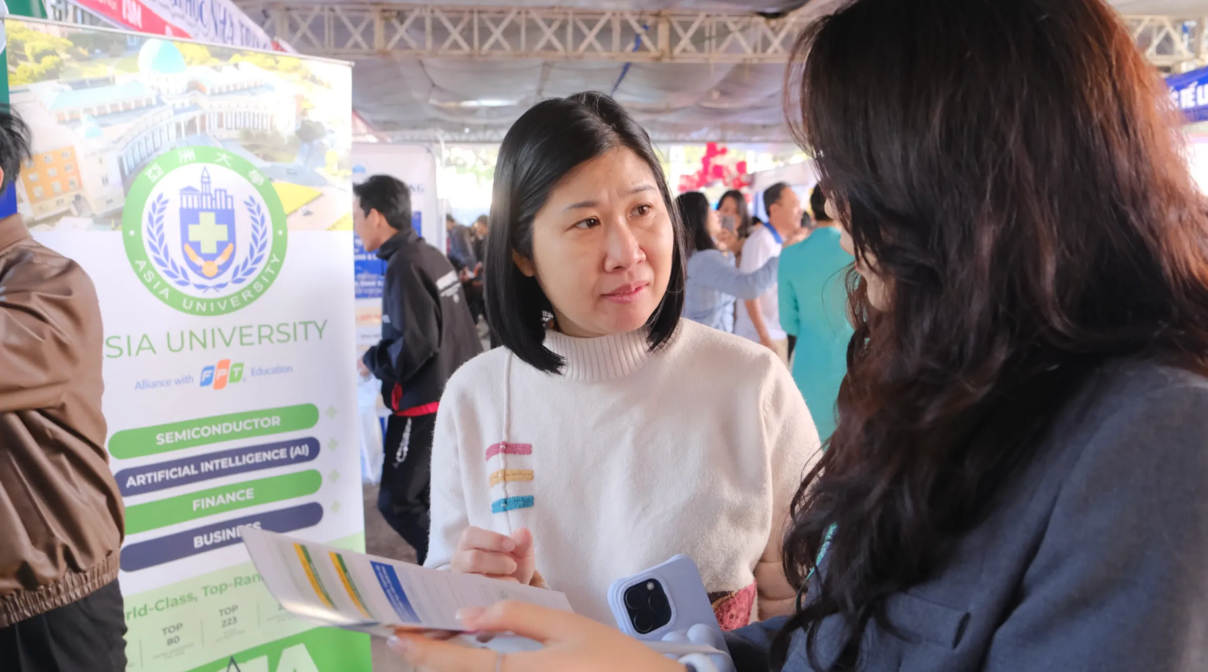 Thông qua việc kết hợp tư vấn và trải nghiệm, gian hàng của Asia University Vietnam tạo điều kiện để học sinh chủ động tương tác, đặt câu hỏi và từng bước hình thành tư duy định hướng nghề nghiệp sớm. Đây cũng là cách giúp học sinh tránh việc lựa chọn ngành học theo cảm tính hoặc chạy theo xu hướng ngắn hạn.